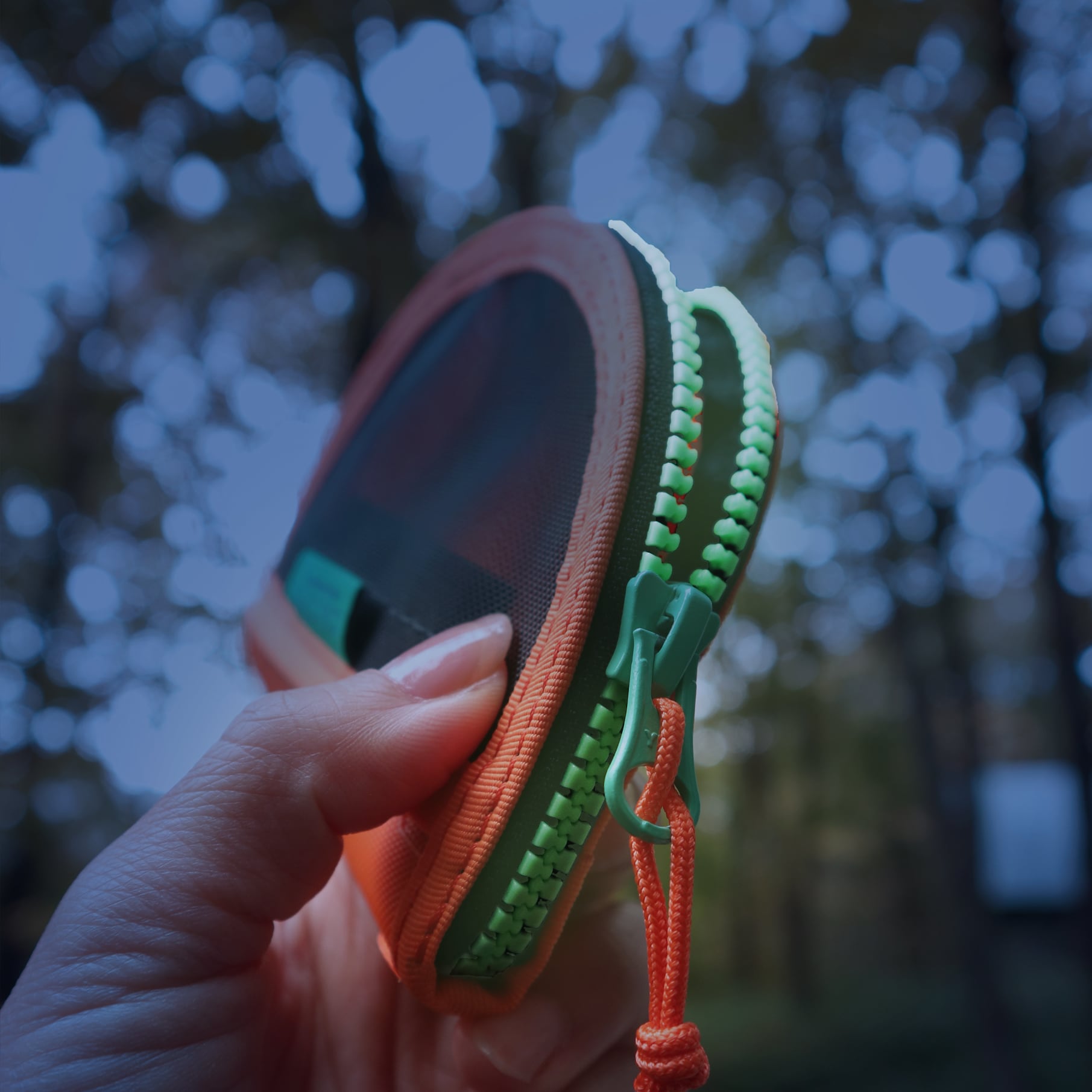 蓄光ファスナーは、グリーンとオレンジに発光!