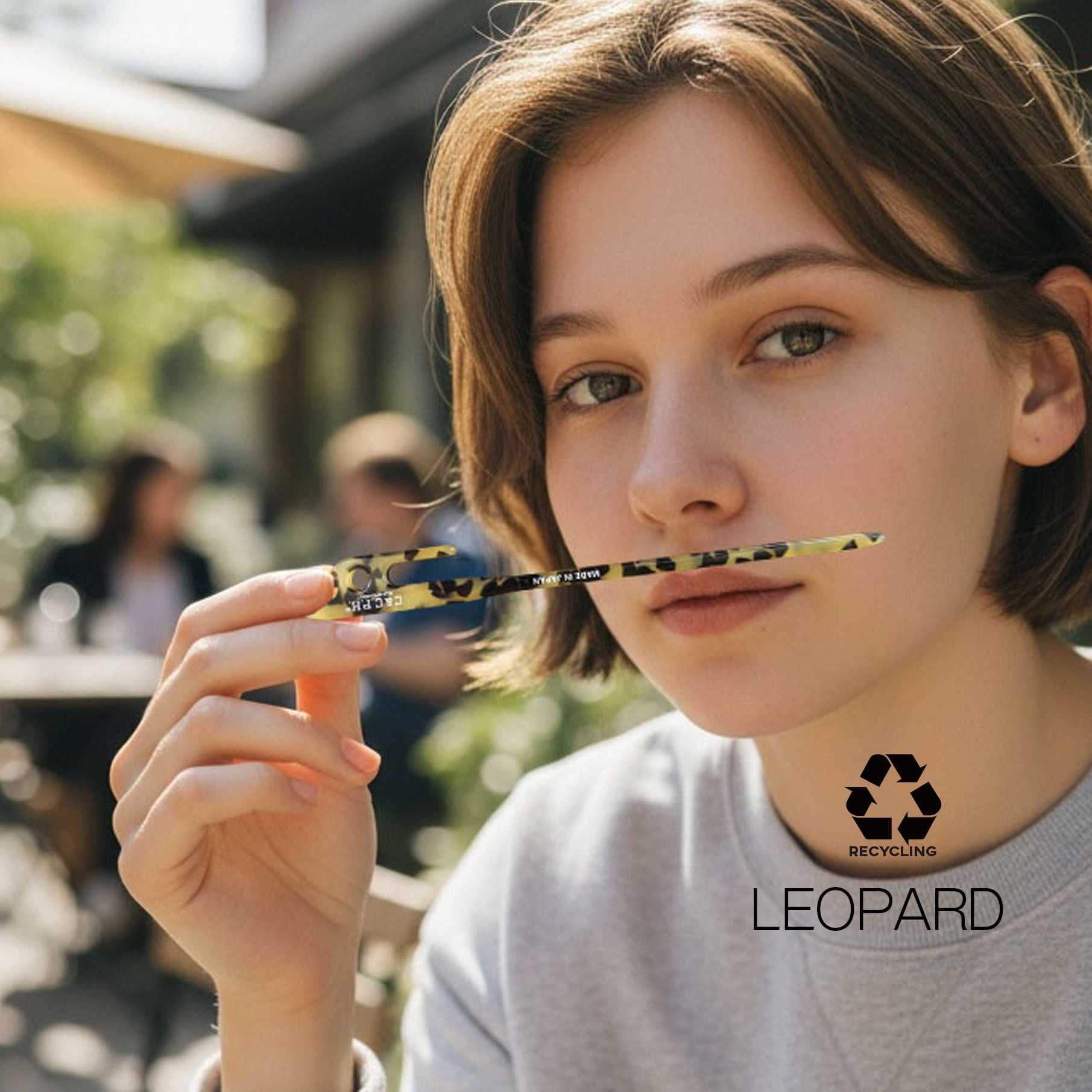 ブラックチップを散りばめて鼈甲のようにカラーアクリルに閉じ込めた『レオパード』
